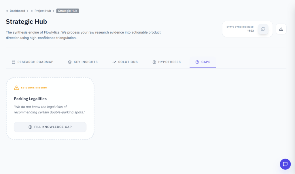 Flowlytics never fills gaps with guesswork. If your evidence vault is missing a critical piece of the puzzle, the system flags it as a “Knowledge Gap.” This deterministic approach ensures every decision is rooted in reality, not AI hallucinations.